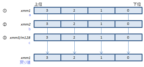 ①②③の各ビットについてimm8で指定したビット単位の論理演算を行い結果を第一オペランド(戻り値)に返す