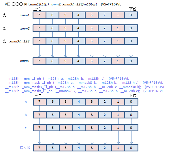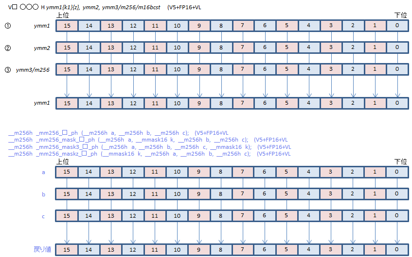 | VFMADDSUB213PH | ②*①+③ | ②*①-③ | |