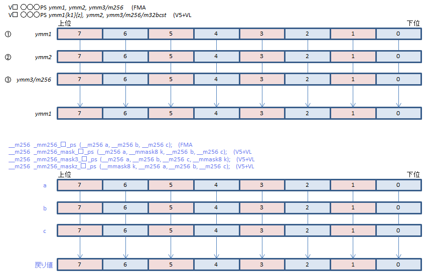 | VFMADD231PS | ②*③+① | ||