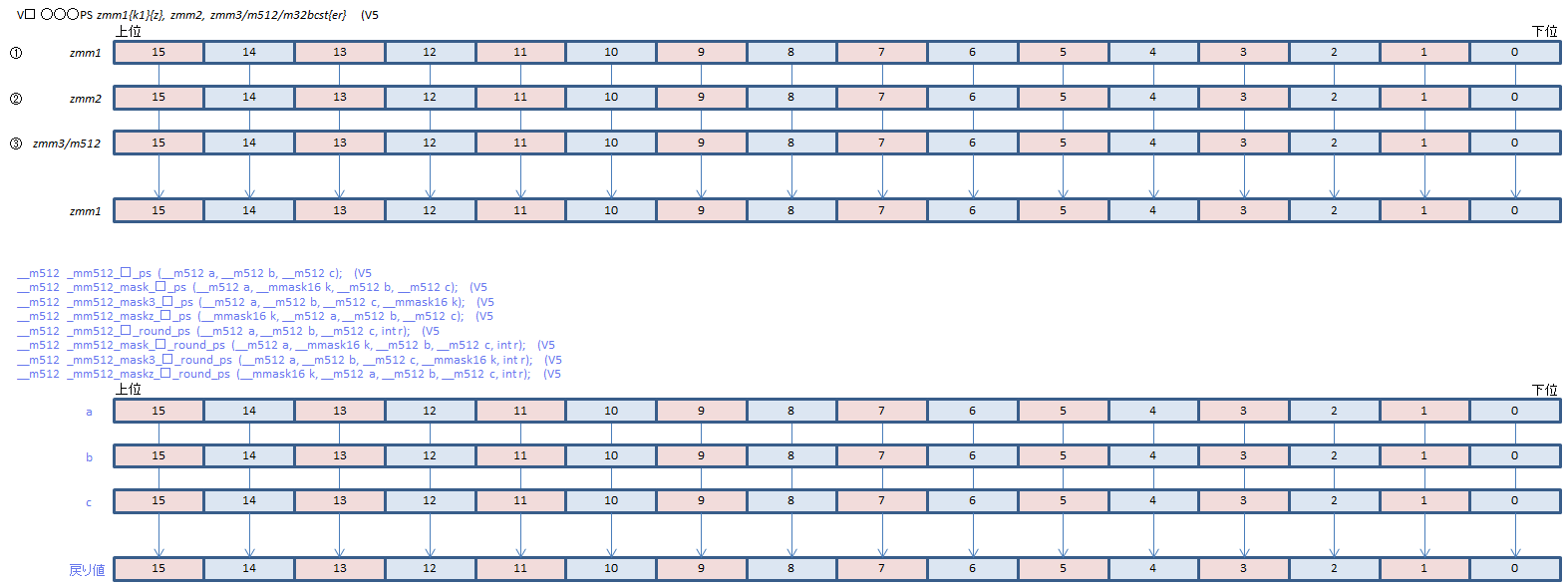 | VFMADD213PS | ②*①+③ | ||