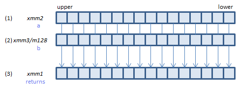 For each BYTE calculate (1) - (2) with unsigned saturation and set the result to (3). Set 0 on overflow.