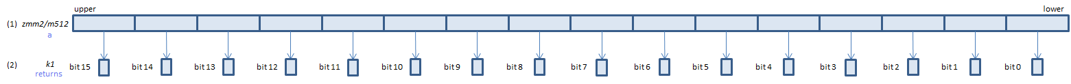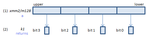 For each float, if (1) belongs to one of the classes specified in imm8, set 1, else set 0, to the corresponding bit of (2).