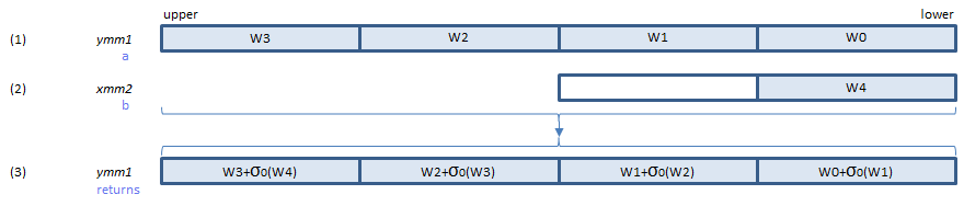 VSHA512MSG1 instruction does the sigma conversion and addition of 1 in the illustration above.