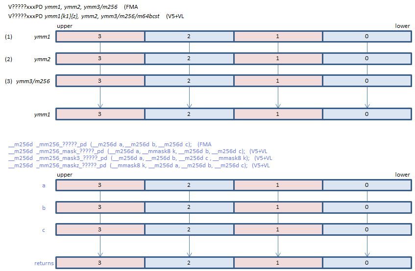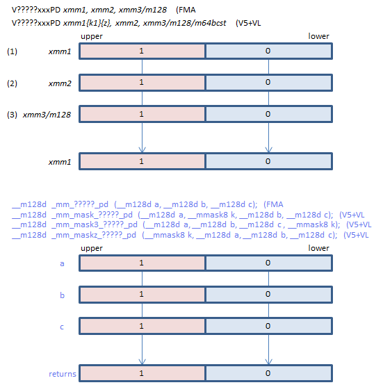 | VFMADD231PD | (2) * (3) + (1) | ||