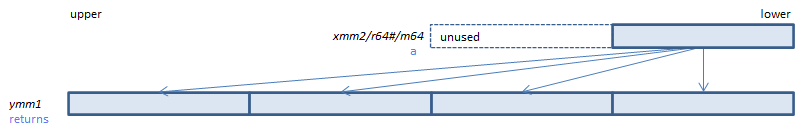 VPBROADCASTQ ymm1, xmm2/m64 (V2