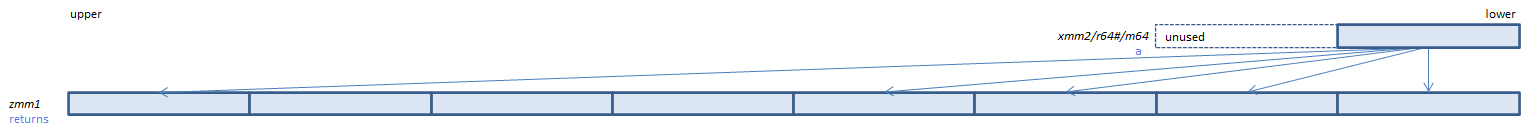 VPBROADCASTQ zmm1{k1}{z}, xmm2/r64#/m64 (V5