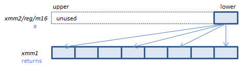 VPBROADCASTW xmm1, xmm2/m16 (V2