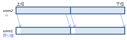 __m128i _mm_sra_epi64(__m128i m, __m128i count) countの下位QWORDでビット数を指定