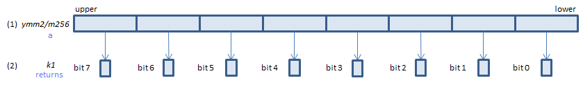 For each float, if (1) belongs to one of the classes specified in imm8, set 1, else set 0, to the corresponding bit of (2).