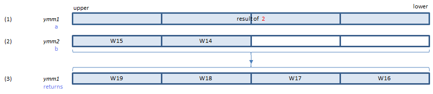 Executing VSHA512RNDS2 instruction once, 2 rounds of the loop are processed.