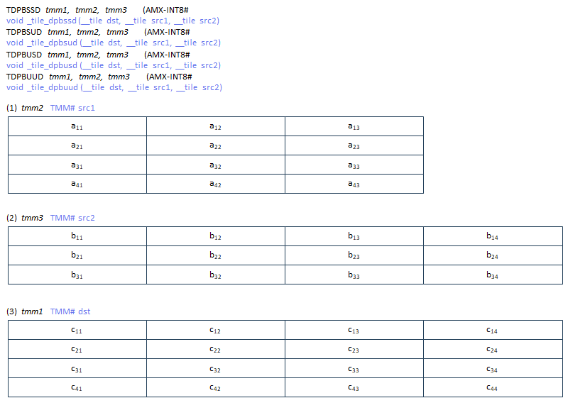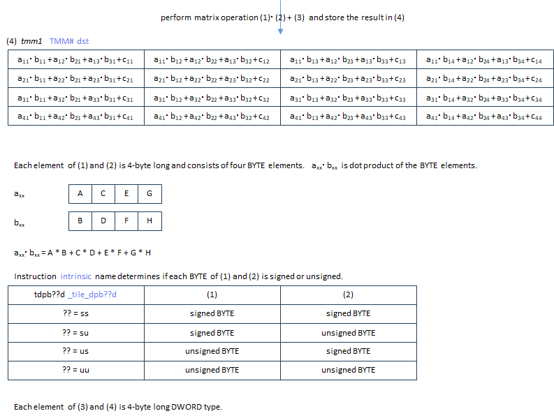 TDPBSSD - Tile Dot Product Byte Signed Signed Dword